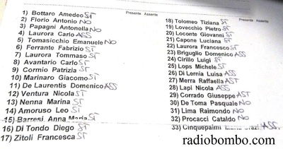 Con 19 favorevoli, 6 contrari e due astenuti, il bilancio viene approvato. Prospetto del voto in foto.