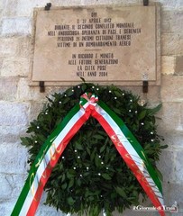 La corona di fiori sulla lapide commemorativa in via Statuti Marittimi viene posta ogni 25 aprile, ma l’anniversario di quella data che cambiò la vita di quindici famiglie tranesi ricorre oggi. Stiamo parlando della “Pasquetta di sangue” del 27 aprile 1943, della quale abbiamo scritto diffusamente due giorni fa.