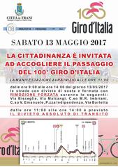 Il 13 maggio la città di Trani sarà attraversata dalla carovana del giro d’Italia di ciclismo. Per quella data, attraverso ordinanza sindacale (la 12/2017), è stata disposta la chiusura delle scuole cittadine di ogni ordine e grado alle ore 10.30.