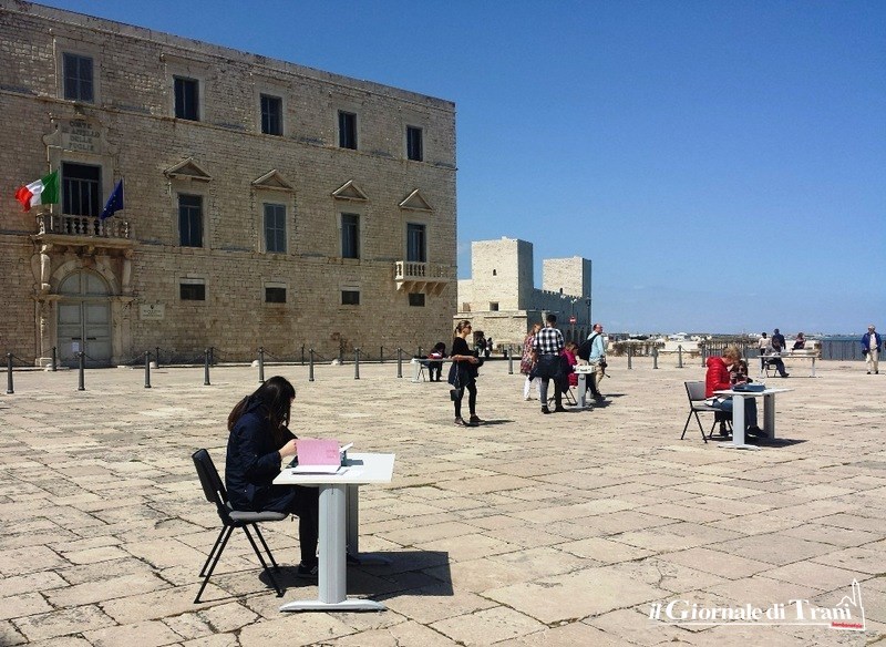 Macchine per scrivere disseminate in piazza Duomo, per cogliere il vero attimo e concludere nel migliore dei modi un pregevole corso di tecniche di scrittura. A proporlo, in esclusiva per Trani, uno dei massimi esponenti del settore, Luigi Dal Cin, ferrarese, che ha tenuto in città un corso di 15 ore, frequentato da decine di appassionati tra i 23 ei 60 anni, la maggior parte dei quali docenti.