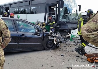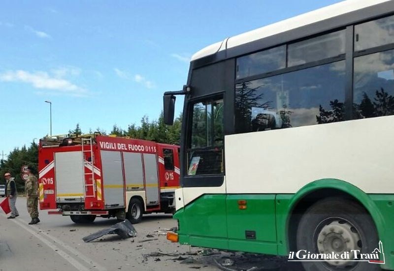 La vettura che conduceva, diretta verso Corato, è finita su un bus di linea che si dirigeva a Trani all'altezza dello svincolo con la Strada provinciale 231. La donna è parsa cosciente ai soccorritori ed è stata estratta dall'abitacolo grazie all'intervento dei vigili del fuoco e soldati dell'Esercito che, transitando proprio in quegli attimi, si sono fermati a prestare soccorso prima dell'arrivo del 118.