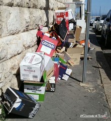 Il retrobottega non sempre è un luogo nascosto agli occhi della gente. Al contrario, in alcuni casi, diventa l'anticamera del degrado. È quello che accade in piazza Plebiscito, nei pressi dell'intersezione con via Statuti Marittimi. Lo stretto marciapiede adiacernte palazzo Palumbo (poi Quercia), da alcuni giorni è quasi impercorribile a causa dei rifiuti depositati da uno o più locali della zona.