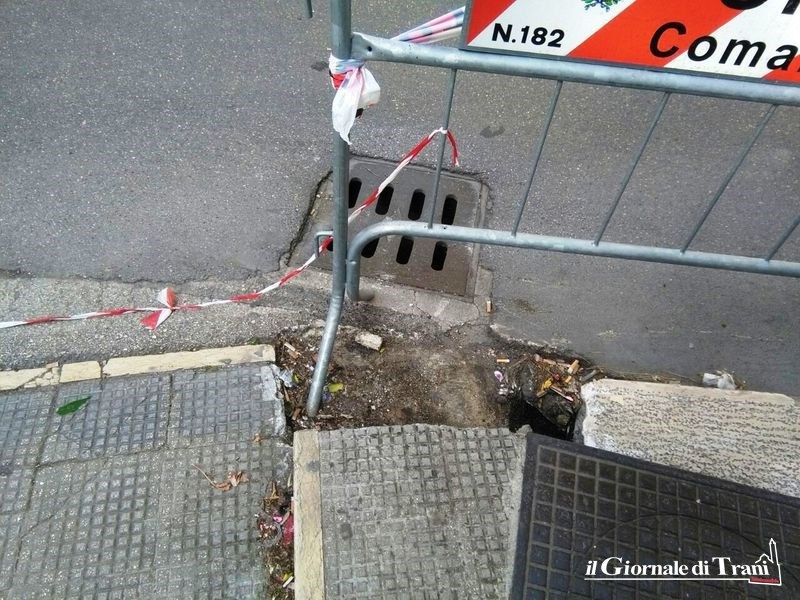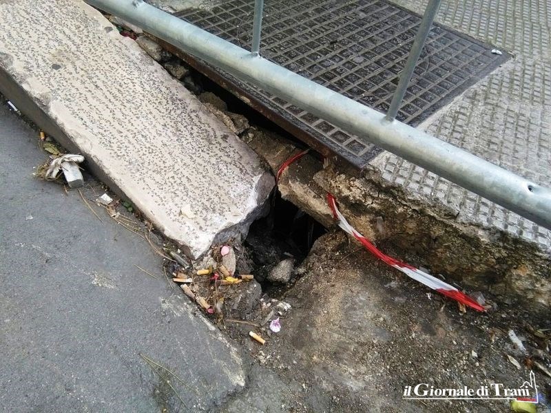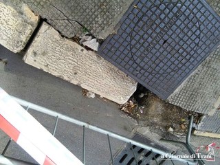 Come si può notare dalle foto aggiornate, un tombino è ormai posizionato sul vuoto ed anche lo stesso cordolo in pietra del marciapiede nei pressi sembra prossimo a sprofondare.