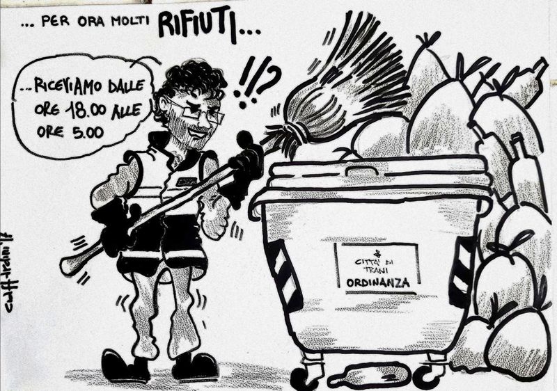 Gli orari di conferimento dei rifiuti sono al centro della nuova vignetta di «Tutto d'un tratto Trani», che raffigura l'assessore all'ambiente, Michele di Gregorio, nei panni dell'operatore ecologico pronto a richiamare la relativa ordinanza, ma anche, i rifiuti intesi come difficoltà di comunicazione tra amministrazione e cittadini sul tema della gestione dei servizi ecologici in città.