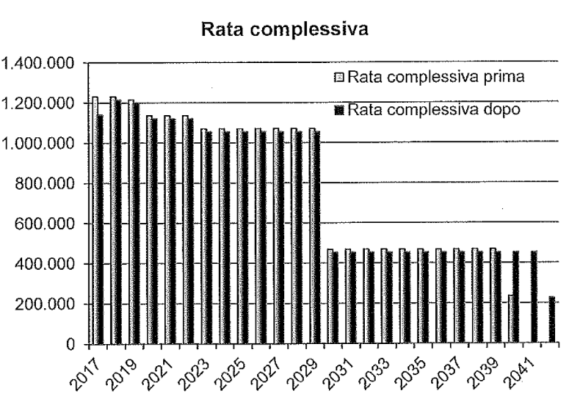 In pratica si fa passare il messaggio di un risparmio annuo di 15.422,00 euro ma in realtà si aumentano gli interessi da pagare su quelle somme e si prolunga di altri due anni il termine del rientro, dal 2040 al 2042.