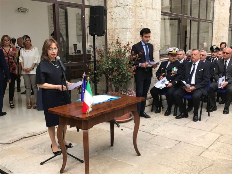 La cerimonia si è aperta con le note dell’Inno di Mameli a cura dell’Orchestra dell’Istituto “Ettore Fieramosca” di Barletta e con la lettura del messaggio del Presidente della Repubblica Sergio Mattarella ed il saluto istituzionale del Prefetto di Barletta Andria Trani, Clara Minerva.
