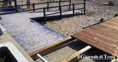 È il frutto di un accordo fra Comune di Trani e Nono reggimento fanteria Bari, di stanza presso la caserma Lolli Ghetti, la nuova pedana di accesso per disabili alla spiaggia di Colonna, in adiacenza del lido militare e della baia del pescatore. Sostituirà completamente quella preesistente, ormai inservibile, al centro di numerose critiche e denunce negli ultimi anni.