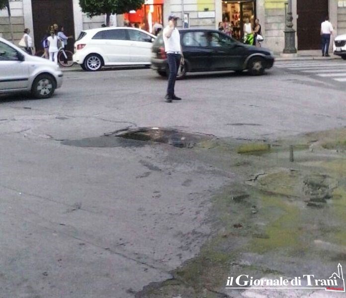 Si attende l'arrivo della squadra di pronto intervento di Acquedotto pugliese. Sul posto è presente la Polizia locale.