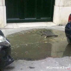 Dopo quelle verificatesi rencetemente a Pozzopiano, una nuova perdita dalla fogna nera si è registrata intorno alle 20 in via De Robertis, nei pressi dell'intersezione con corso Vittorio Emanuele e via Andrea Ciardi.