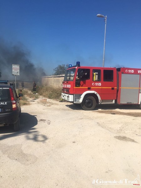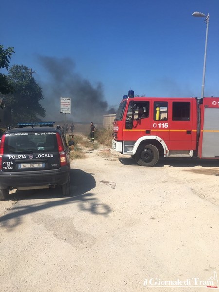Un vasto incendio è divampato ieri, intorno alle 15, in un'ampia area demaniale in concessione al Comune di Trani adiacente il civico cimitero nei pressi della litoranea di Ponente. A fuoco sterpaglie per almeno 500 metri quadrati con all'interno copertoni e rifiuti speciali abbandonati da tempo in quell'area.
