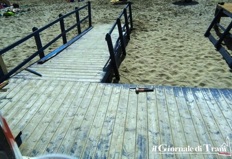 Come avevamo scritto, la pedana è frutto di una istanza per il superamento delle barriere architettoniche, e nello specifico per la fruizione balneare in favore di soggetti diversamente abili, raccolta e promossa dall’associazone Orizzonti, attraverso un accordo tra l’amministrazione comunale di Trani e il Nono Reggimento Fanteria “Bari” (che si è occupato del ripristino della struttura).