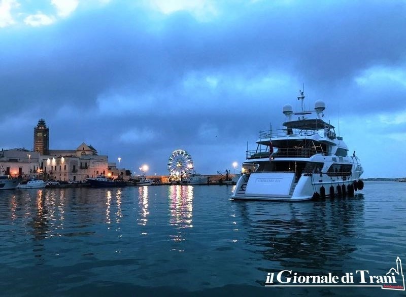 Occhi sgranati nel porto di Trani, e segnatamente al pontile maggiore della darsena comunale, per il transito inaspettato di Chrimi III, mega yacht di 40 metri battente bandiera di Malta, di proprietà di stranieri, ma costruito in Italia dal cantiere navale Benetti, con livrea esterna disegnata da Stefano Righini ed interni griffati da François Zuretti.
