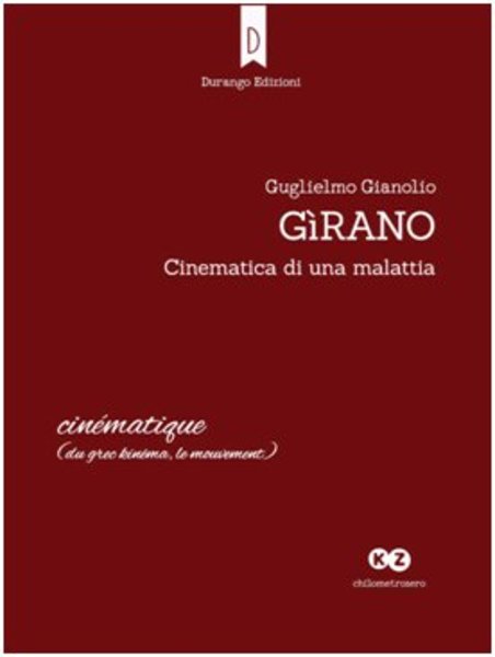 È questo uno dei passaggi significativi di "Gìrano - Cinematica di una malattia", di Guglielmo Gianolio, edito da Durango, primo titolo della nuova collana "Chilometro zero". La presentazione avverrà oggi, venerdì 7 luglio, alle 19.30, nell'atrio di Palazzo Covelli, in via Ognissanti 123, a cura di Felice Di Lernia, editore e curatore della collana, con letture di Vittorio Malcangi.