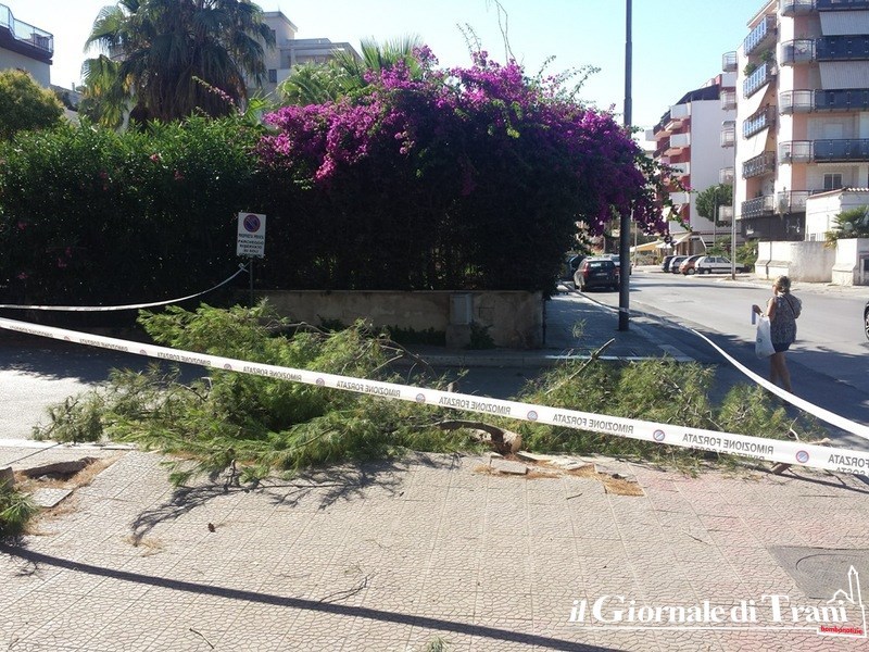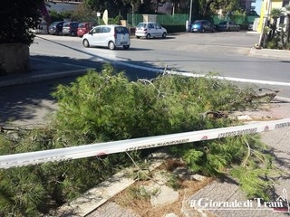 A causa della forte vento della notte, un ramo di un pino situato all'intersezione fra via Malcangi e via Antonio Bassi, che pendeva pericolosamente e si sarebbe potuto staccare da un momento all'altro, è stato tagliato e smiinuzzato in mattinata da operatori della manutenzione del verde urbano, per la tutela della pubblica incolumità.