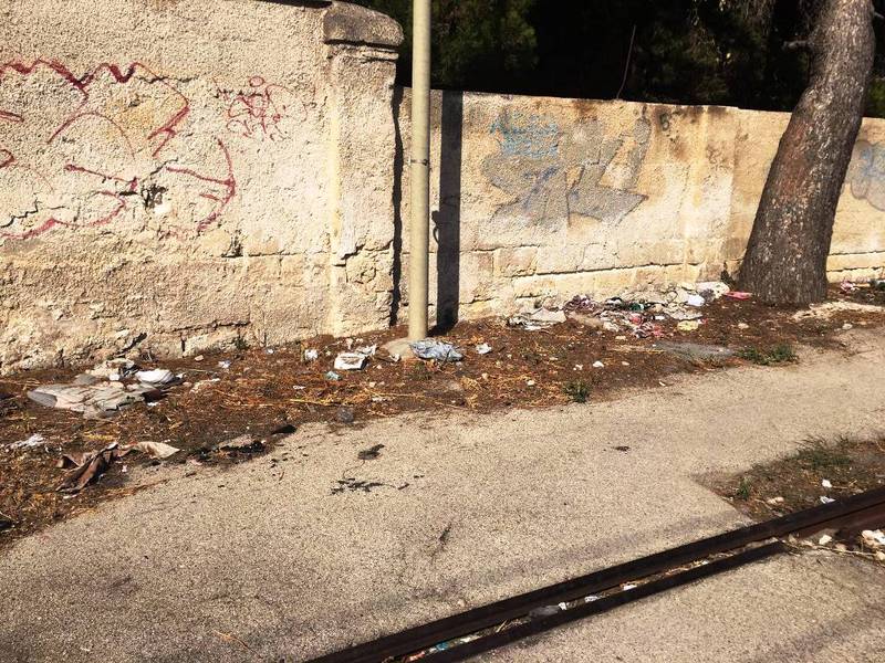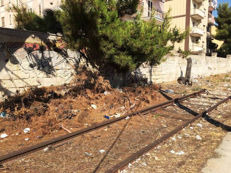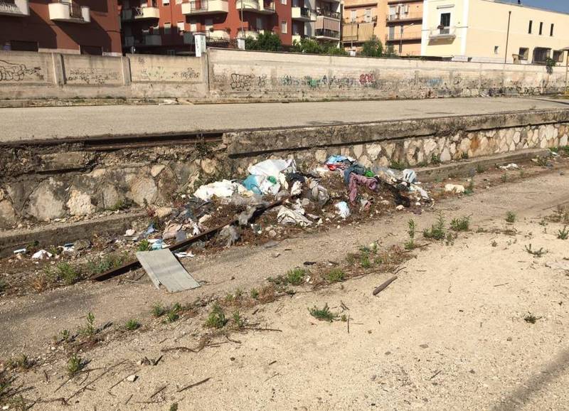 In particolare i binari ferroviari, nel tratto che va dalla stazione al passaggio a livello di via Annibale Di Francia, in cui sono presenti ogni tipo di rifiuti abbandonati, nonché muri e marciapiedi lordati da maleodoranti tracce di urina.