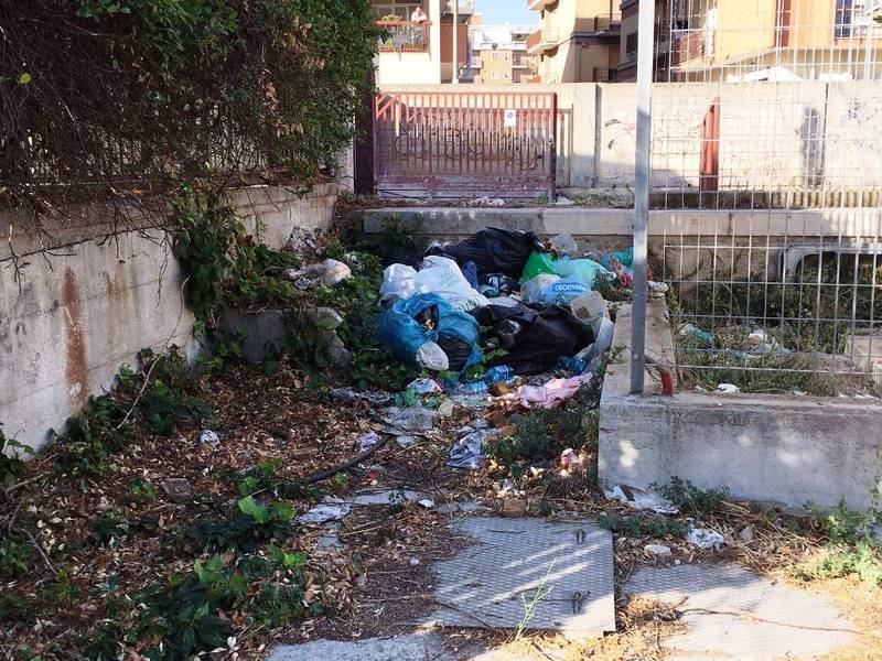La zona del mercato settimanale presenta vistose tracce di oggetti e buste abbandonati e poi trasportati dal vento, particolarmente nel campo sito in via Cilea.