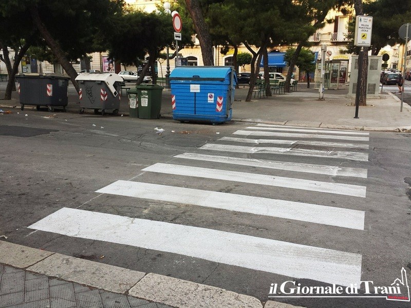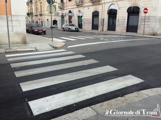 Contemporaneamente si stanno tracciando strisce pedonali su tutti gli attraversamenti della zona, compreso uno stop per i veicoli provenienti da via Barisano da Trani.