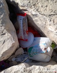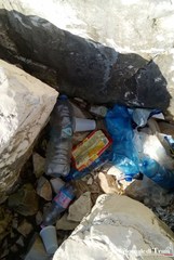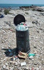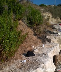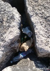 Alla assenza di pulizia deve aggiungersi, naturalmente, l’inciviltà di coloro che lasciano di tutto sugli scogli: buste di patatine, bottiglie di vetro e plastica, lattine in alluminio.