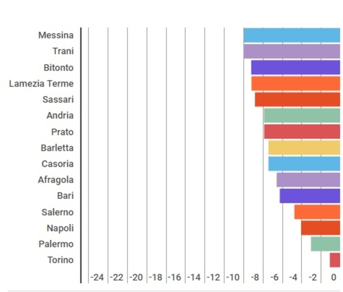 Trani ha perso il 9,91 per cento dei giovani rispetto al 2007, cioè 950 giovani dal 2008 al 2017.