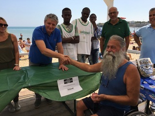 Un vero e proprio successo che ha consentito per la prima volta a Trani la creazione di un punto di accesso assistito per disabili in una delle spiagge più frequentate della città, reso possibile anche grazie al prezioso aiuto dei richiedenti asilo ospiti del consorzio Matrix, protagonisti di un’encomiabile opera di assistenza nonché di una importante testimonianza di integrazione sociale.