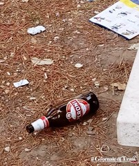 A poche ore di distanza, abbiamo dovuto registrare non solo la presenza di un uomo che urinava a cielo aperto, noncurante dei passanti, ma anche di rifiuti: cartacce e soprattutto bottiglie di vetro. Ancora più pericolose quelle completamente ridotte in frantumi.