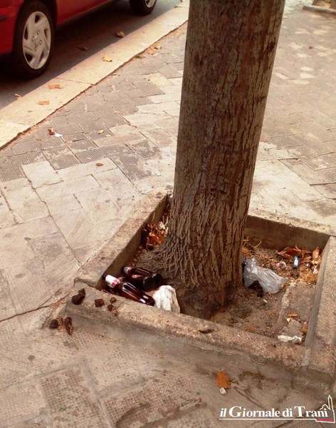Urine, feci, cartoni vuoti di latte, immondizia: questi i rifiuti che si trovano, stamattina, all'interno degli alloggiamenti degli alberi presenti in via Nicola De Roggiero, proprio di fronte al plesso De Amicis, all'incrocio con via Vischi e via Giustina Rocca. Avviliti e indignati i residenti della zona. La situazione, come abbiamo scritto in altro articolo, è simile a quella di villa Bini, simbolo della inciviltà sempre più imperante in città.