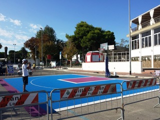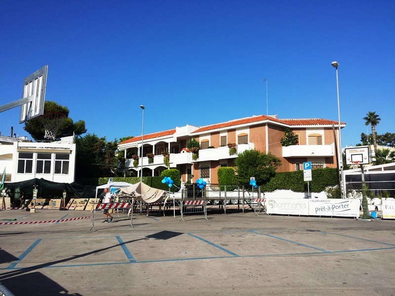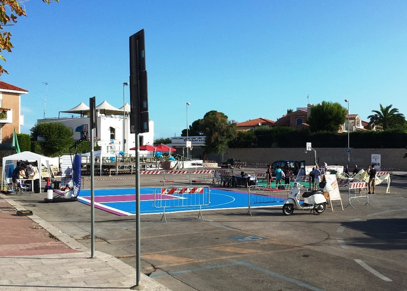 Nell'ampio piazzale davanti al mare sono stati allestiti campi di basket, calcetto, volley, un tatami per le arti marziali, un palco per l'esibizione di scuole di danza ed altri stand che fanno riferimento ad ulteriori discipline sportive.