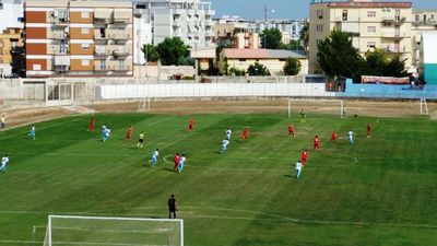Condizionato da un terreno di gioco apparentemente in buone condizioni, ma rivelatosi nel corso della partita particolarmente insidioso per una serie di falsi rimbalzi, con la seguente formazione: Sansonna, Rizzi Valido, Di Meo, Bruno, Telera, Camporeale, Cantatore, Fernandez, Lavopa, Sisalli. A disposizione del tecnico Pizzulli, Monopoli, Cepele, Zambetta, Martinelli, Rociola e Faccini.