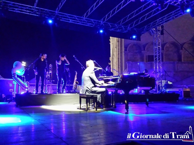Gualazzi non si leva dal pianoforte e parla solo con la musica, a parte un cenno di ringraziamento al suo batterista. L'unica sua esigenza è suonare e cantare, dando molto spazio alle improvvisazioni anche perché accompagnato da una band di altissimo livello tecnico. Lui si diverte tra falsetti e vocalizzi per fare scaldare la piazza, costretta ogni tanto a scrutare anche il cielo che, a tratti, lascia cadere qualche goccia di pioggia.