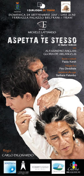 Una storia attualissima di disagio, verso i quali occorre porre una riflessione di natura civile e morale. Questo e molto altro in «Aspetta te stesso», di Walter Veltroni, diretto da Carlo Dilonardo, con Michele Lattanzio protagonista principale, Alessandro Anglani e Gloria de Arcangelis. Sarà questo, oggi alle 21.30, sulla terrazza Davide Santorsola di Palazzo Beltrani, lo spettacolo conclusivo dell'edizione 2017 dei Dialoghi di Trani.
