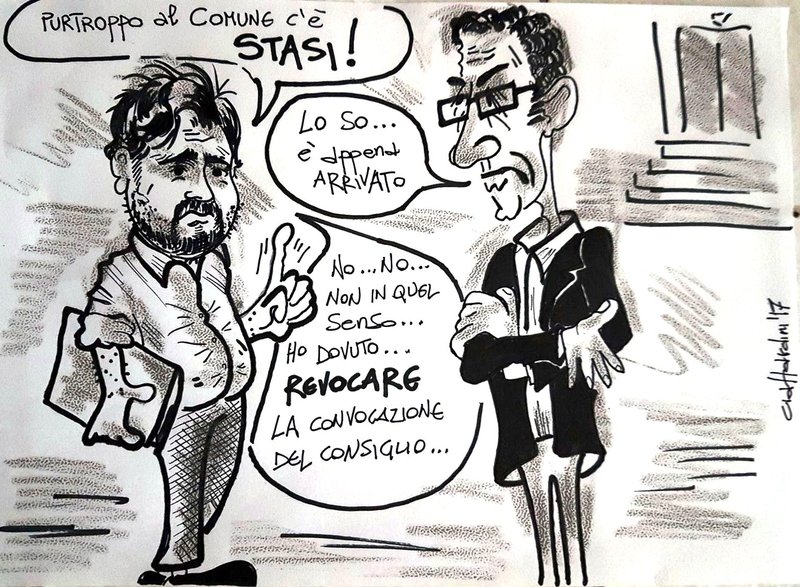 Così, proprio mentre all'Area urbanistica torna il dirigente titolare, il consiglio si ferma e la vignetta nasce spontanea.