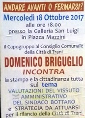 Briguglio intende incontrare la cittadinanza e gli organi di informazione parlando del «vissuto amministrativo del sindaco Amedeo Bottaro e della strategia da attuarsi per il rilancio della città di Trani».