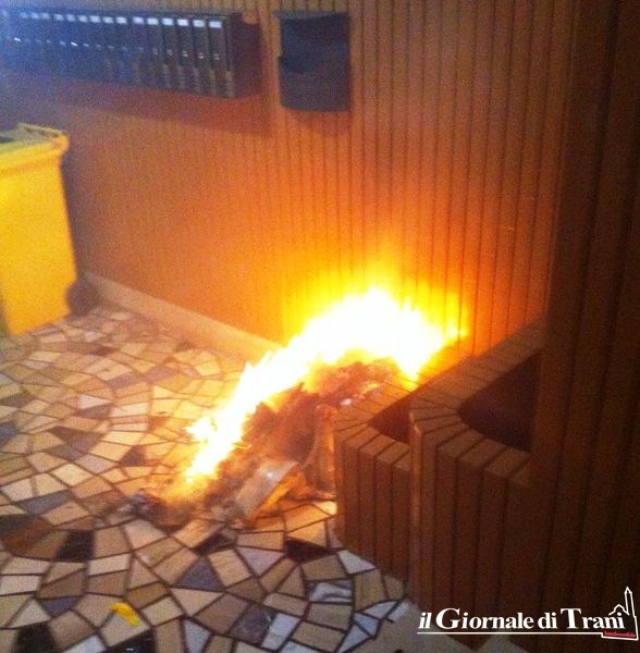Sono dovuti intervenire i vigili del fuoco, e adesso indagano i carabinieri della Compagnia di Trani, in merito all'atto vandalico consumatosi questa notte nell'androne di un condominio di via Calatafimi: ignoti hanno appiccato il fuoco al bidoncino della raccolta differenziata per la carta, determinando danni alle parti comuni dello stabile.