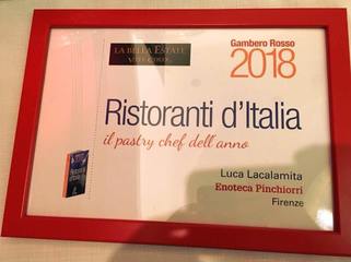 Il tranese Luca Lacalamita si è aggiudicato il titolo di miglior pasticcere 2018, secondo quanto determinato dalla giuria del Gambero rosso, con riferimento alla celebre «Guida» dei migliori ristoranti d'Italia. Nello specifico, Lacalamita ha conquistato il titolo di «pastry chef dell'anno», in abbinamento con l'enoteca Pinchiorri, di Firenze.