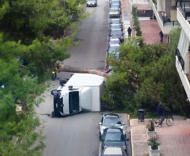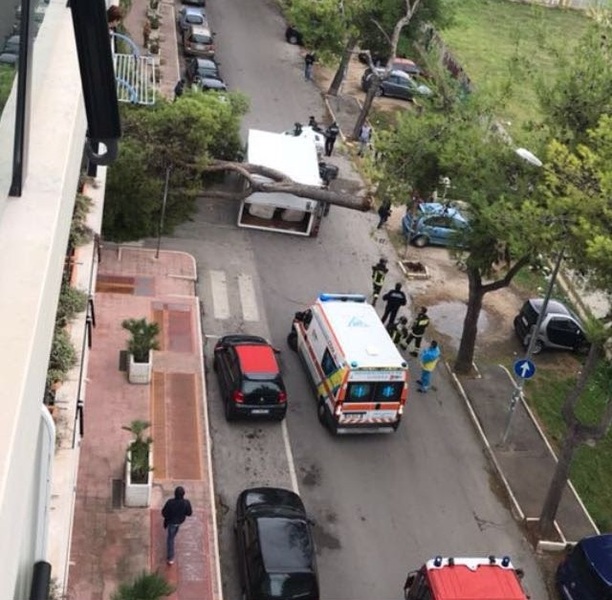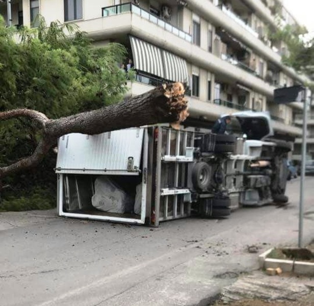 È rimasto fortunatamente illeso Il conducente di un autocarro che intorno alle 14, durante il transito in via Bari, mentre si dirigeva verso via Tolomeo, è stato travolto da un albero spezzatosi proprio in quel momento.
