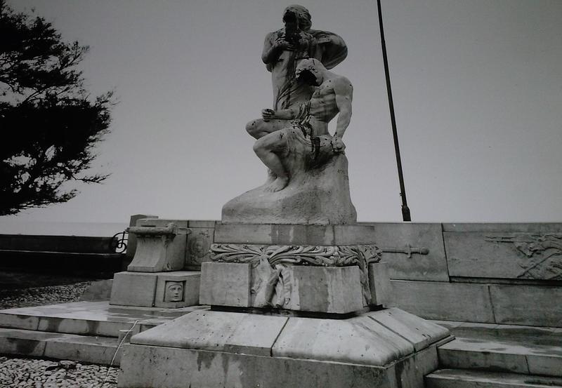 Eliminata perché in un conflitto non vi è mai vittoria? Oppure semplicemente rubata e scomparsa dai ricordi dei tranesi? Se pensiamo che il monumento è sotto gli occhi di tutti sembra incredibile. In merito non ho trovato nulla se non uno spiacevole episodio di vandalismo perpetrato la notte del 3 novembre del 1968, quando fu cosparso di vernice nera.