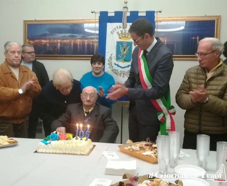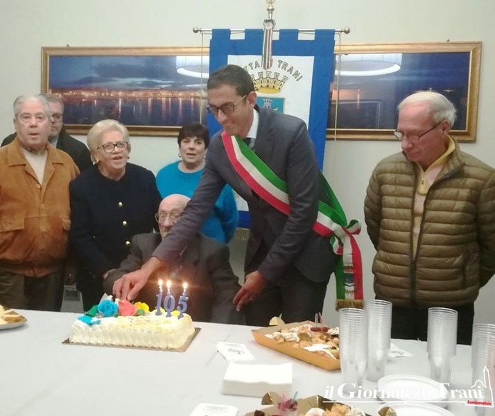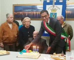 «Una lunga vita dedicata alla famiglia ed al lavoro. Fulgido esempio per la comunità tranese e le nuove generazioni». Con questa motivazione Nicola Oreste, che ieri ha festeggiato i 105 anni, ha ricevuto l'onorificenza Ordinamenta maris consegnatagli dal sindaco, Amedeo Bottaro, insieme con il classico soffio sulle candeline, in occasione del suo compleanno.