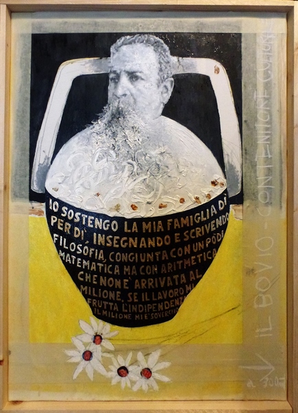 Il poliedrico artista, che si distingue soprattutto per le opere con le quali spesso denuncia il degrado dell’ambiente ed il malgoverno, ha detto: «Esprimo la mia volontà di donare quest’opera al museo itinerante “Giovanni Bovio” e quindi all'associazione “Progetto Bovio” perché l’opera è stata creata appositamente per il primo concorso di pittura dedicato al grande statista. Vorrei che continuasse il suo percorso all'interno del focolare che le ha dato la luce, quello dell'associazione “Progetto Bovio”. Le opere sono create per essere ammirate e il museo itinerante ne dà l'occasione più autentica».