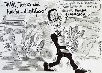 Ne approfittiamo, a questo punto, per pubblicare anche la vignetta che ancora avevamo in serbo, attendendo sviluppi sulla cava fumante di contrada Monachelle e su quella che ospita la discarica di Trani.