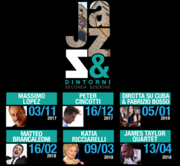 Il programma della seconda edizione della rassegna “Jazz e dintorni”, presentato in anteprima venerdì 3 novembre in occasione della prima con Massimo Lopez, prevede, tra gli altri appuntamenti, anche il 5 gennaio i Dirotta su Cuba & Fabrizio Bosso, il 16 febbraio Matteo Brancaleoni, il 9 marzo Katia Ricciarelli, il 13 Aprile i James Taylor Quartet.