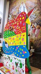 Un termine, quello, del SI’, letteralmente composto, settimana dopo settimana, domenica dopo domenica, dai ragazzi della Parrocchia, che hanno realizzato questo totem in legno e polistirolo, che man mano ha preso forma, vicino all’altare, con i vari colori dei continenti e supportato da una base con sfondo bianco. Su questa erano impresse tante mani, rappresentanti a loro volta il supporto ed il sostegno delle “guide” responsabili all’educazione della cultura del SI’. E tra queste guide, primi a dare l’esempio ed al tempo stesso protagonisti di quel SI da imprimere nella mente dei più giovani, ce ne sono diverse che incontriamo tutti i giorni: da Gesù, primo, nella storia del Cristianesimo a dire SI’ per salvare l’umanità, compiendo il progetto del Padre di redenzione degli uomini, accettando di farsi uomo, venendo sulla Terra e sacrificare la propria vita per quel progetto di Salvezza e di Esempio.