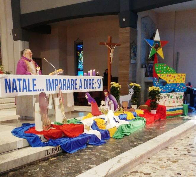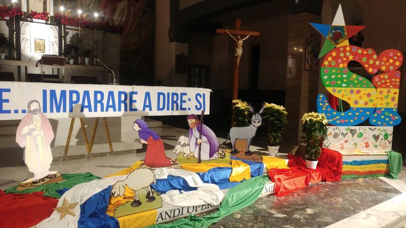Anche in questo Natale 2017 la parrocchia della Madonna di Fatima, diretta da padre Carlo Diaferia coi suoi confratelli rogazionisti, si distingue per essenzialità ed originalità nell’allestimento del proprio presepe. Non una rappresentazione classica, ma fortemente simbolica. Quest’anno si è scelto come significato centrale il concetto del “SI’”, come emblema di disponibilità al bene, alla generosità, all’aiuto verso il Prossimo, alla dedizione e al sacrificio verso quest’ultimo.