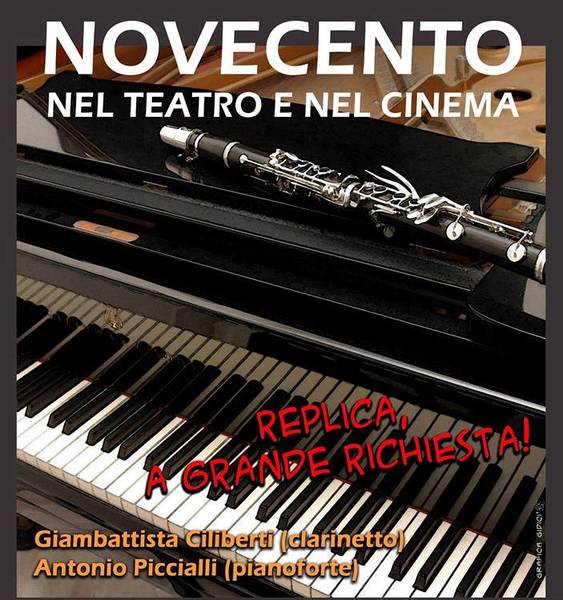 Domenica 7 gennaio alle 19 nel circolo del cinema Dino Risi di Trani in via Andrea Ciardi 26 torna a grande richiesta il concerto "Novecento nel teatro e nel cinema" con Giambattista Ciliberti (clarinetto) - Antonio Piccialli (pianoforte).