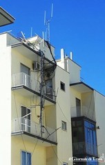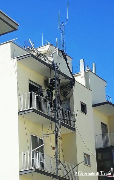 L'antenna di una stazione radio base si è spezzata, a causa del forte vento, sul lastrico solare di palazzo Galleria, nella porzione compresa tra piazza della Repubblica e via Aldo Moro.