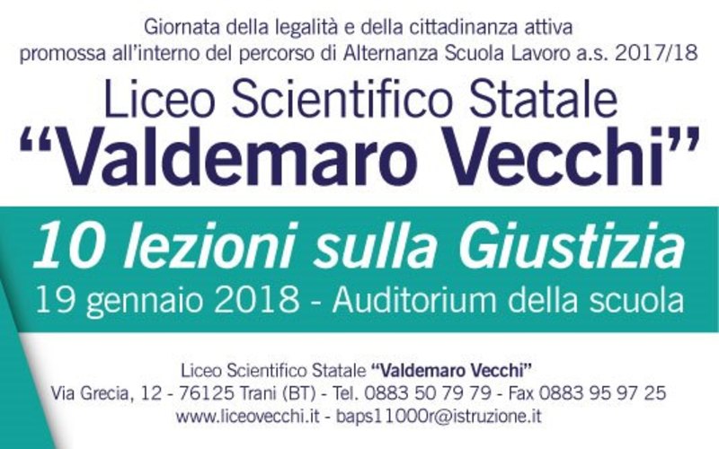 La giustizia oggi, vista dai ragazzi e spiegata ai ragazzi. Un consigliere di Stato, Francesco Caringella, sarà l'ospite speciale di un'intera giornata che il Liceo scientifico Valdemaro Vecchi dedicherà alla legalità e cittadinanza attiva. «Che cosa è la giustizia che, quotidianamente, viene amministrata in nome del popolo italiano nelle nostre aule di tribunale? Vale il principio per cui “la giustizia è un sogno collettivo che attraversa i tempi e i governi, rimanendo un punto fermo nell’animo umano”, oppure la giustizia può essere concepita come “una farfalla che non conta mesi ma momenti e ha tempo a sufficienza”?»