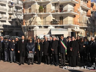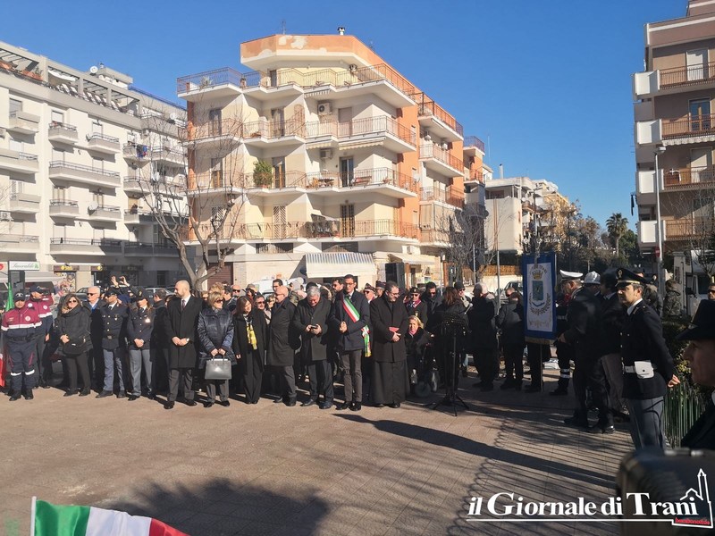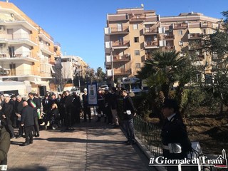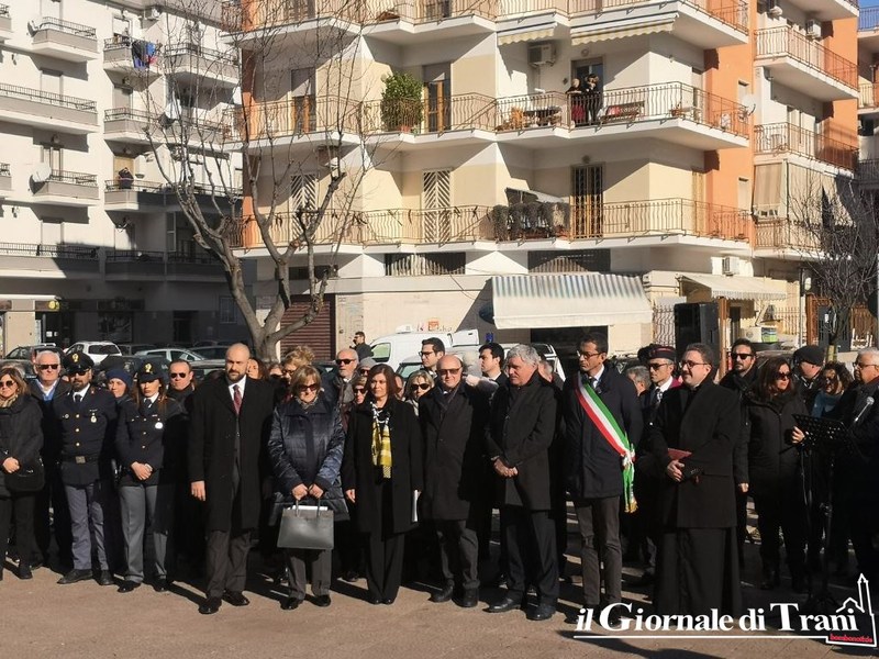 Gli alunni del quarto circolo didattico Beltrani hanno intonato e cantato l'inno nazionale italiano, prima degli interventi del parroco dello Spirito Santo, don Mimmo Gramegna, che ha benedetto l'ulivo della pace piantato nell'aiuola al cui interno vi è anche la stele dedicata al compianto commissario, e del sindaco, Amedeo Bottaro. Presenti autorità religiose civili e militari.