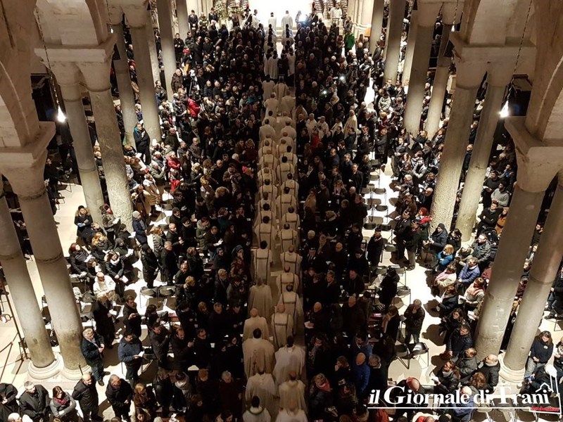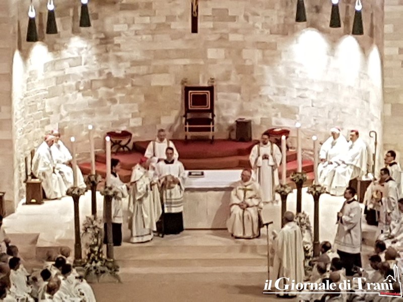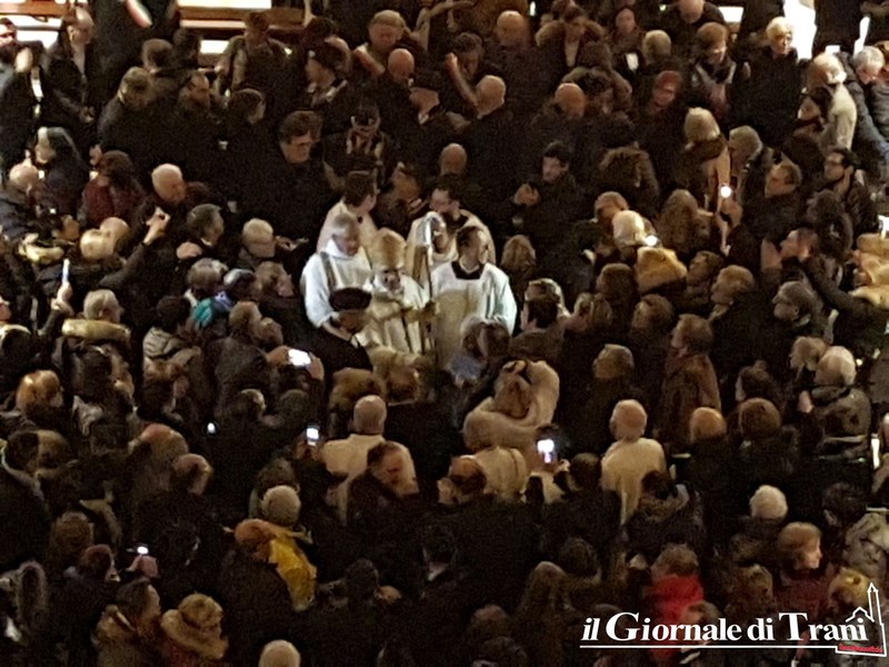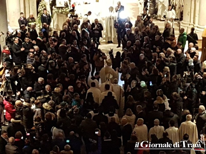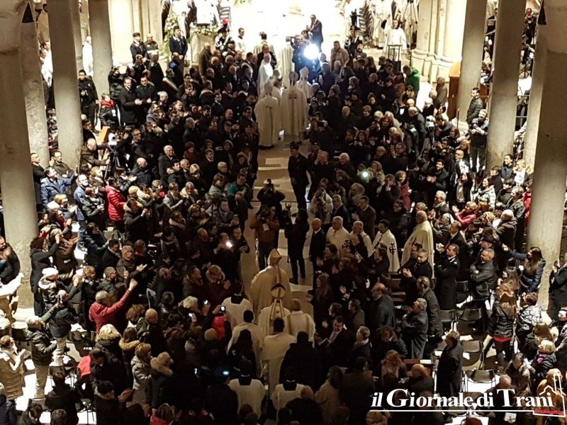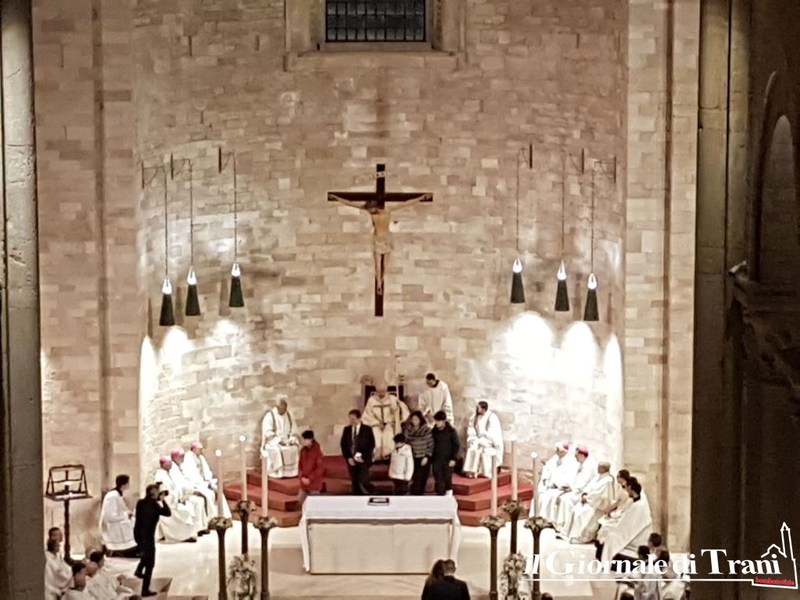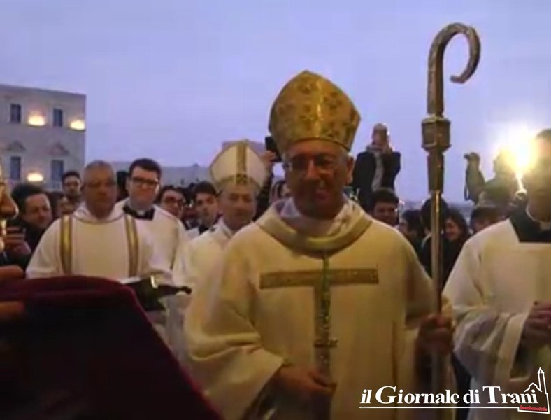 È avvenuto all’interno della cattedrale di Trani, dove è stata letta anche la nomina ufficiale di Papa Francesco, di cui riportiamo uno stralcio: «Al diletto figlio Leonardo D’Ascenzo, del clero della Diocesi di Velletri-Segni, fino ad oggi Rettore del Pontificio Collegio Leoniano di Anagni, eletto Arcivescovo di Trani-Barletta-Bisceglie, con annesso Titolo arcivescovile di Nazareth, salute e Apostolica benedizione. Dovendosi provvedere al pastore per la chiesa arcivescovile di Trani-Barletta-Bisceglie con annesso titolo arcivescovile di Nazareth, vacante per il decesso del suo Vescovo Giovanni Battista Pichierri, di venerata memoria, è parso a Noi, successore del Beato Pietro e Padre universale, udito il parere della Congregazione dei vescovi, che tu, diletto figlio, essendo munito delle necessarie qualità ed esperto di teologia dogmatica e spirituale e delle realtà ecclesiali, sia idoneo a guidarla. […] Abbi cura, diletto figlio, assistito dai doni dello Spirito Paraclito, di pascere i fedeli affidati alla tua sollecitudine, affinché proseguano ogni giorno a crescere nelle virtù cristiane e si impegnino a riporre ogni loro speranza nel Signore (Sal 73, 28), compiendo la Sua santissima volontà, nella quale risiedono la vera pace e la vera gioia […]». Prima della messa, D’Ascenzo ha baciato il crocifisso.