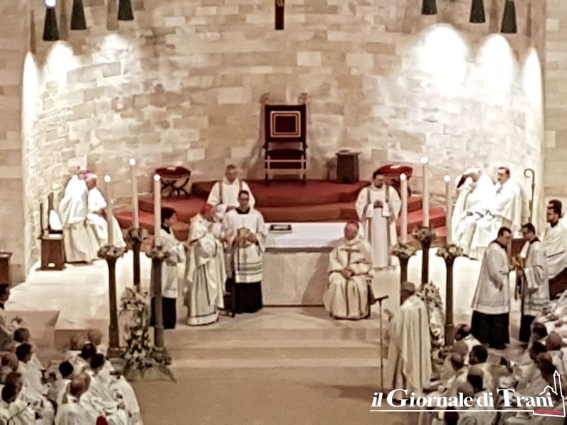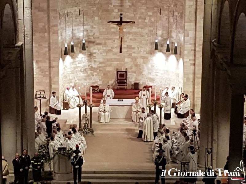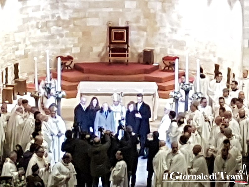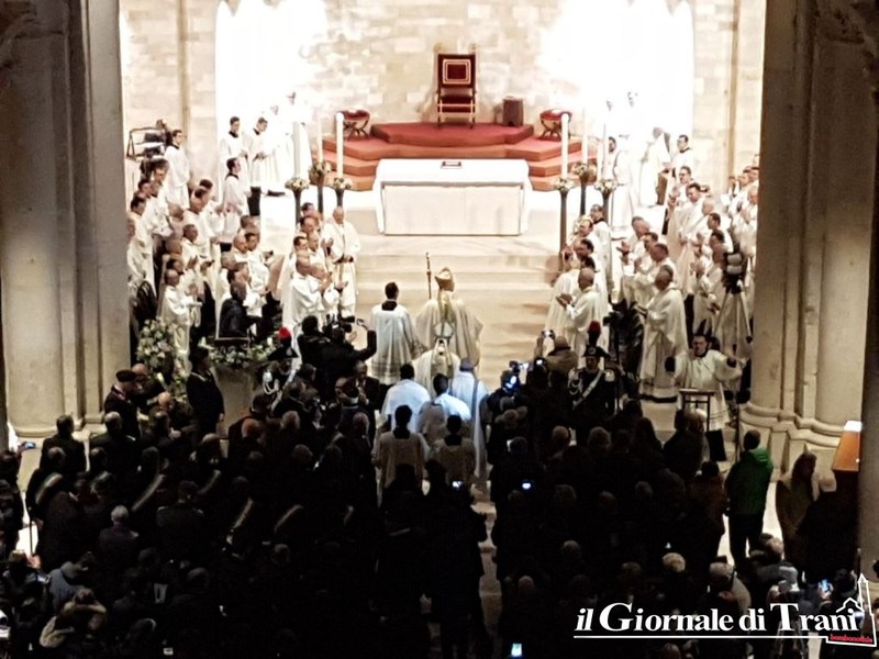Alle 17.40 il metropolita Monsignor Francesco Cacucci ha ceduto la cattedra a Monsignor Leonardo D'Ascenzo, che è ufficialmente arcivescovo di Trani-Barletta-Bisceglie-Nazareth.