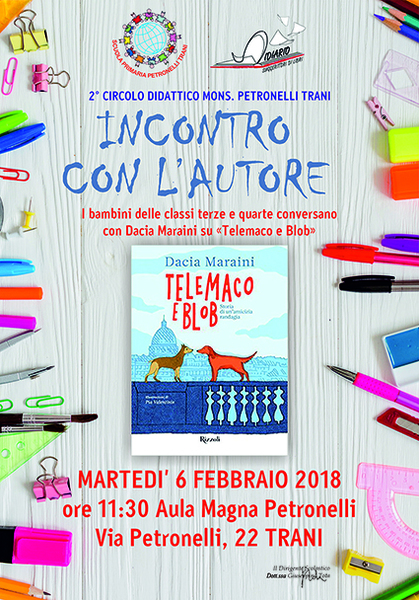 Dacia Maraini parlerà con gli alunni delle classi terze e quarte del suo libro “Telemaco e Blob. Storia di un'amicizia randagia”, una storia di cani e libertà ambientata sul Lungotevere, nelle parole della grande scrittrice italiana.