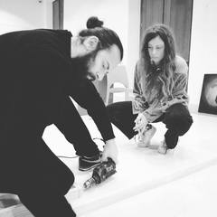 Fabrizio Riccardi (Corato - 1993), che conferisce vitalità alle ombre impresse su carta. I volti scavati, quasi similari a dei fantasmi, esprimono toccanti scene di massa, unita da un medesimo stato d’animo. Il suo lavoro si concentra sul tema della famiglia, producendo opere di grande intensità emotiva, simbolo di una condizione umana di disperazione e solitudine.